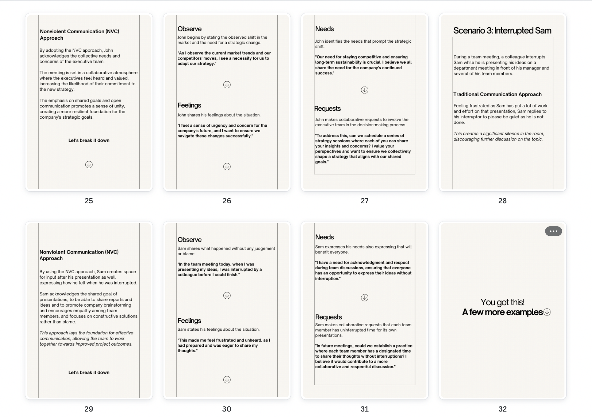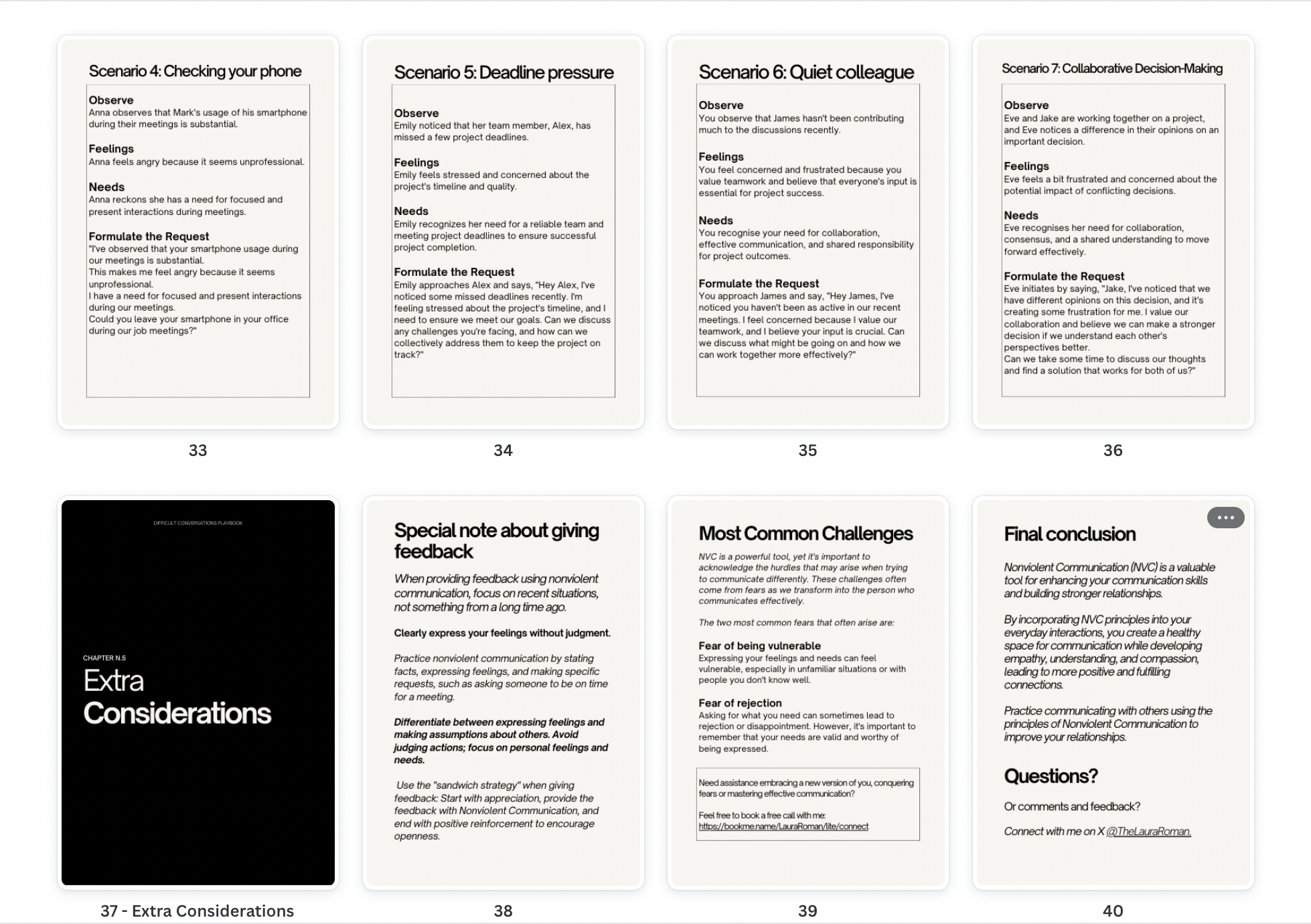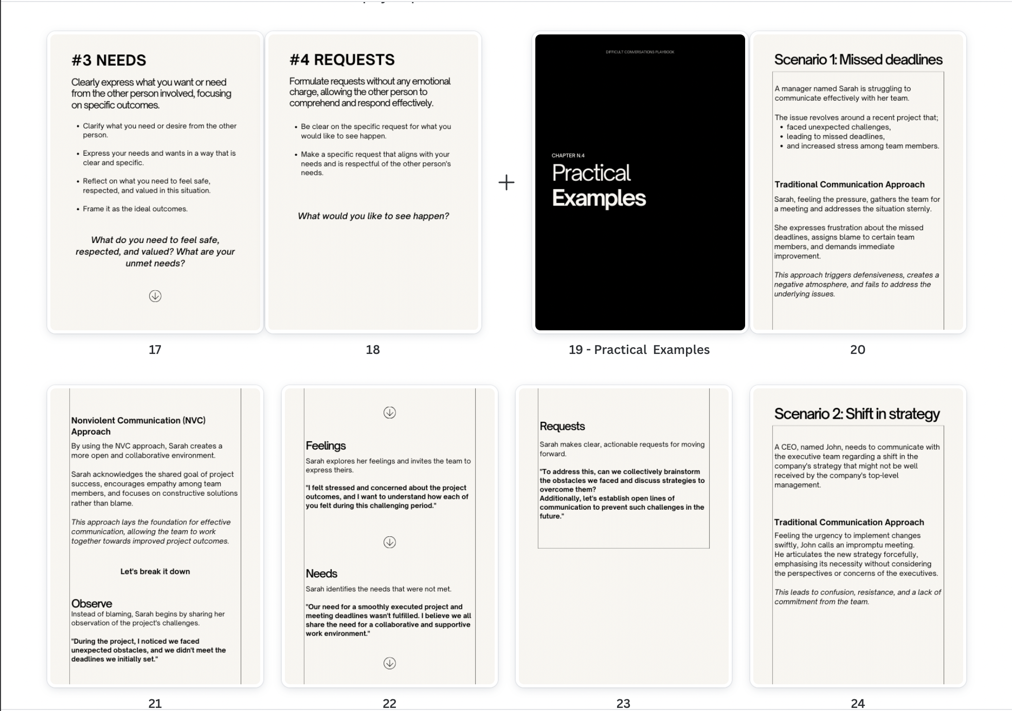 In this playbook, you'll discover 7 practical scenarios and the strategy behind effective communication using Nonviolent Communication principles in a workplace environment.